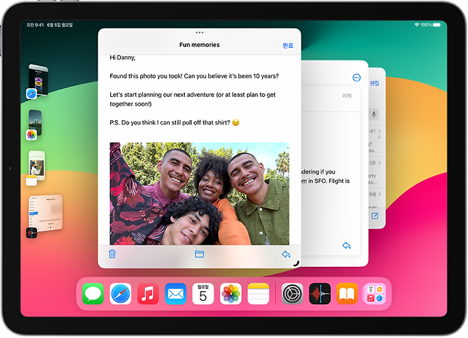 아이패드를 본격적인 생산성 도구로 사용하려면 '스테이지 매니저'라는 기능을 주목하자. 아이패드 프로 12.9형 3세대, 아이패드 프로 11형 1세대 이후부터 지원되며 앱을 여러 개 띄워두고 윈도우의 크기를 원하는 대로 조절할 수 있어 편리하다. 생산성 작업에는 멀티태스킹이 필수인 만큼 스테이지 매니저와 함께라면 아이패드 프로의 활용도가 극대화될 것이다.