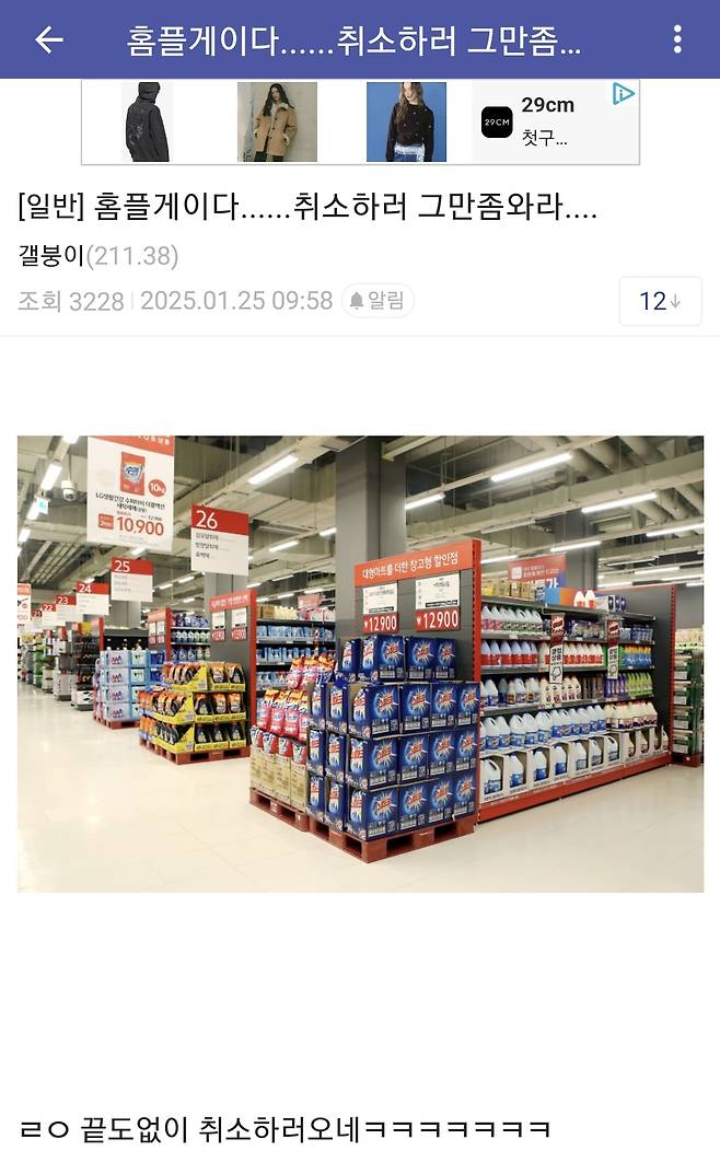 그래서 사람들은 기존에 구매했던 이마트 홈플러스를 취소하고