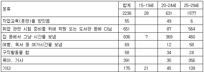 [표] 3년 이상 장기 미취업 청년 활동(단위: 백명)