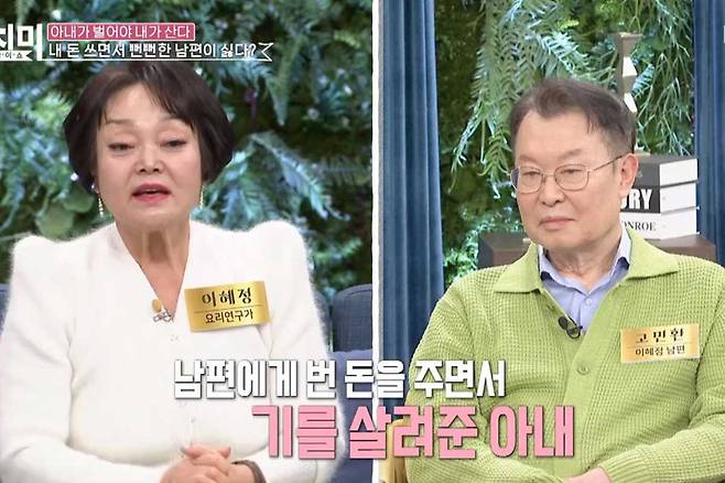 요리연구가 이혜정이 남편 고민환의 씀씀이를 공개하며 불만을 토로했습니다.