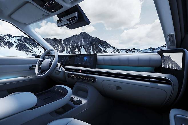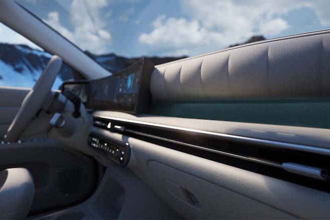 실내는 마치 거주공간과 같은 따스함과 편안함을 전해줄 수 있도록 부드러우면서 풍부한 느낌의 패딩 패턴이 적용됐으며, 운전자 중심의 파노라믹 커브드 디스플레이와 크래시패드 측면에 일체형으로 탑재된 디지털 사이드 미러(DSM)가 적용돼 실용성과 개방감을 높였다.