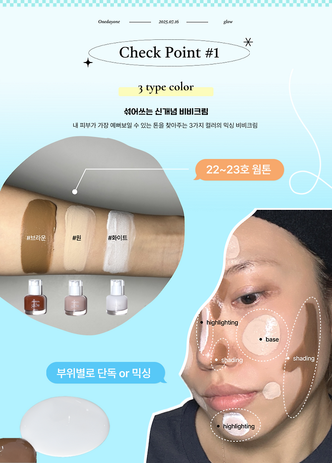 ◾[ 화이트 1 : 원 2 ] 비율로 섞으면, 자연스럽고 생기있는 데일리 베이스 꿀조합을 만들 수 있다.