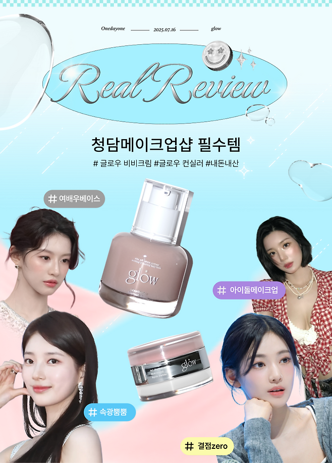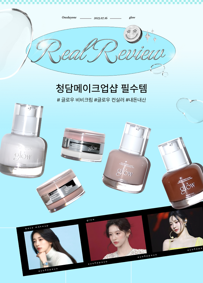 한 번 써보면, 청담메이크업샵에서 왜 '글로우 제품'을 애정하는지 알게될 것이다. 특히 요즘처럼 촉촉한 피부가 대세일 땐 이 조합 하나면 쿠션, 파데 따로 안 써도 된다.