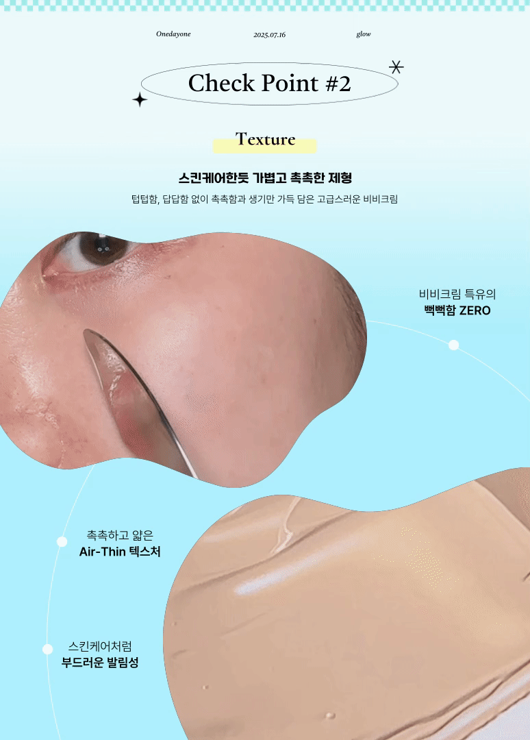 밀림 없이 균일하게 발리니까 모공 부각도 없고, 밀착력이 우수해서 요즘처럼 덥고 습한 날씨에도 지저분하게 무너지지 않는 게 큰 장점.