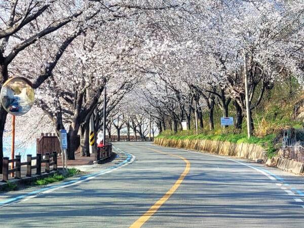 "한국의 아름다운 길 100선"에 선정될 만큼 경관이 수려한 이 구간은 봄철 벚꽃 시즌에 특히 아름답습니다.