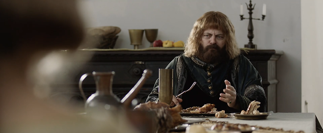 한때, 인근 성의 털보영주는 부인과 식사중임