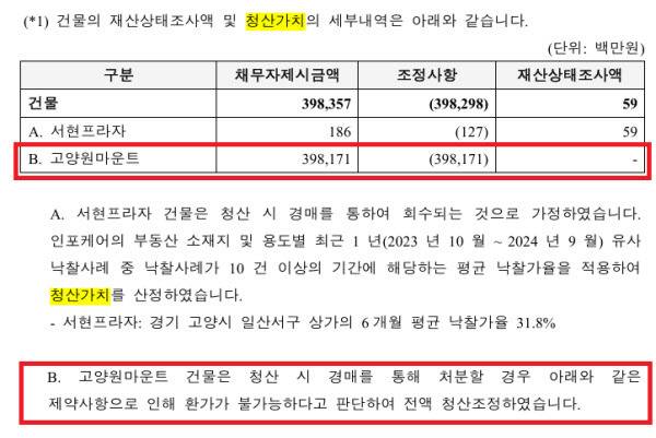 그러나 현재로서는 계약자는 이 돈을 모두 날릴 가능성이 높다. 원마운트 측은 조정안의 초안인 ‘채무자 재산실태조사’에서 원마운트 쇼핑몰과 워터파크 등 건축물 청산 가치를 0원으로 기재했다. 고양시 소유 부지이므로, 해당 건축물 매수자를 찾기 어렵다는 점에서다.
