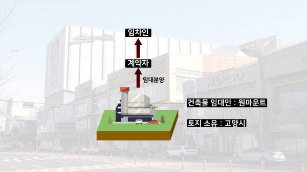 원마운트 대주주는 청원건설이다. 이들은 고양시 소유 땅에 규모 복합테마파크 원마운트를 짓고, 50년 뒤 고양시에 기부채납하기로 했다. 토지 소유자는 고양시지만, 건축물 소유주 및 임대인은 원마운트다. 상가 임대 분양계약자는 임차인(전대인), 월세 계약자는 전차인이다. 쇼핑몰과 스포츠클럽은 각각 임대분양과 멤버십 형태로 보증금을 끼고 있다.