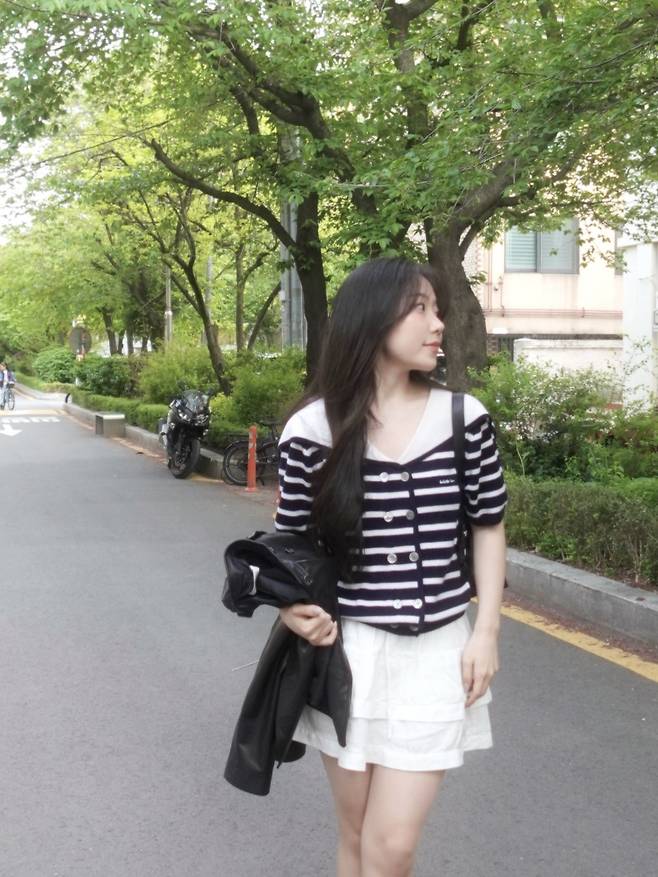 하의는 러블리한 캉캉 미니스커트로 매치해 세일러 무드에 러블리한 감성을 더해보세요.