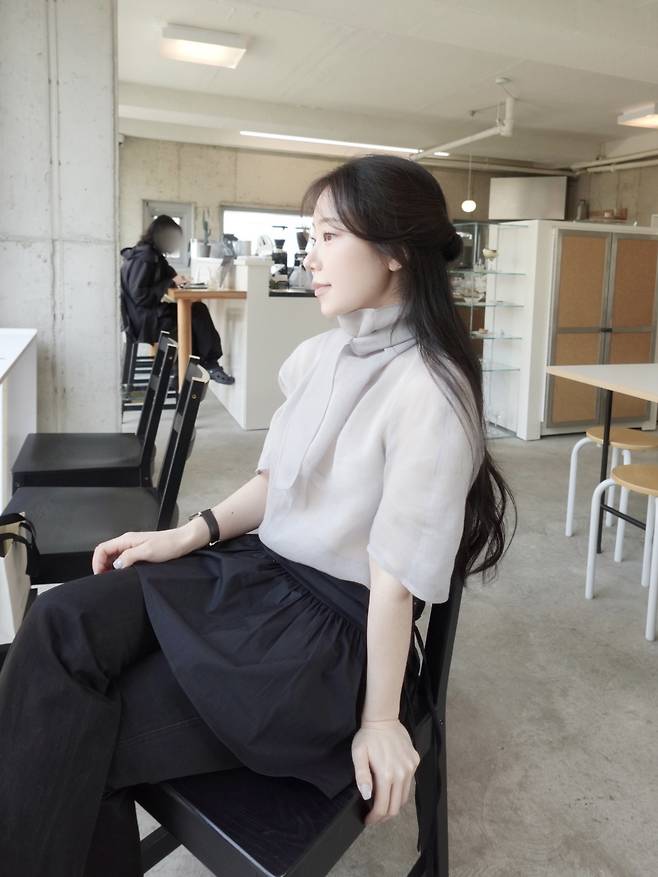 시스루 블라우스 특유의 몽환적이고 우아한 분위기가 살아납니다.