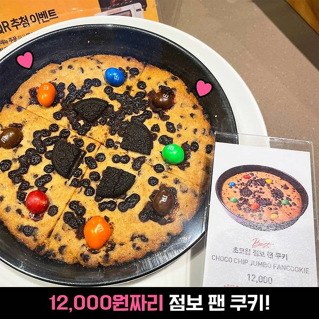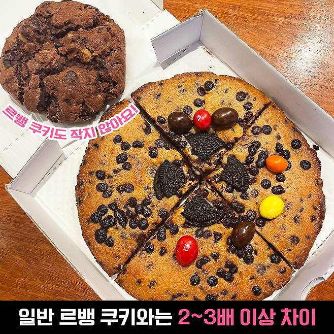 크기 차이는 요정도? 가격은 약 2배 차이 나는 것에 비해 크기는 약 3~4배 차이 나니 가성비 측면을 생각하면 사실 점보 팬 쿠키는 그렇게 비싼 편이 아닐지도 몰라요.
