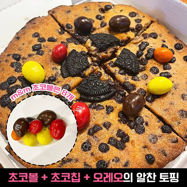 맛을 볼게요. 비주얼만큼 정말 달아요. 여기저기 초코란 초코는 전부 있어서 달 거라고 예상은 했지만 정말로 달다..! m&m쿠키는 보는 맛이 있지만 같이 있는 거는 ㄴㄴ.. 넘나~ 달아서 m&m이나 오레오 쿠키 없이 먹는 게 훨씬 맛있어요.