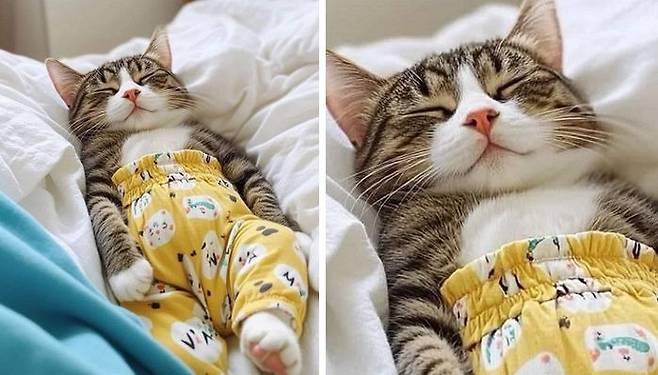 아기 옷 버리기 아까워서 고양이에게 살짝 입혀봤더니…