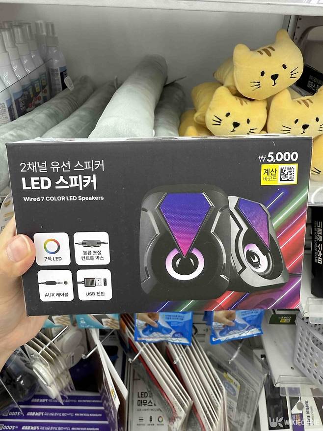 이 제품은 2채널 유선 스피커로, 음악에 맞춰 7가지 LED가 켜져 분위기를 살려준다. 크기는 가로 7.8cm, 세로 10.7cm로 부피가 크지 않아 책상이나 선반 어디서든 놓기 좋다. 케이블 길이는 130cm로 넉넉하다.