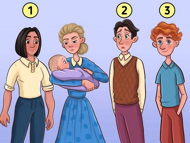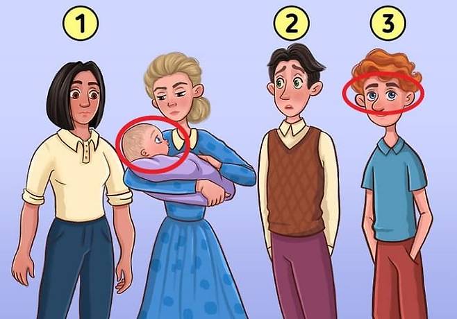 자기 아이라고 주장하는 세 남자들 중에서 진짜 아이의 아빠를 찾는 추리 테스트 그림이 있어 눈길을 사로잡게 합니다.
