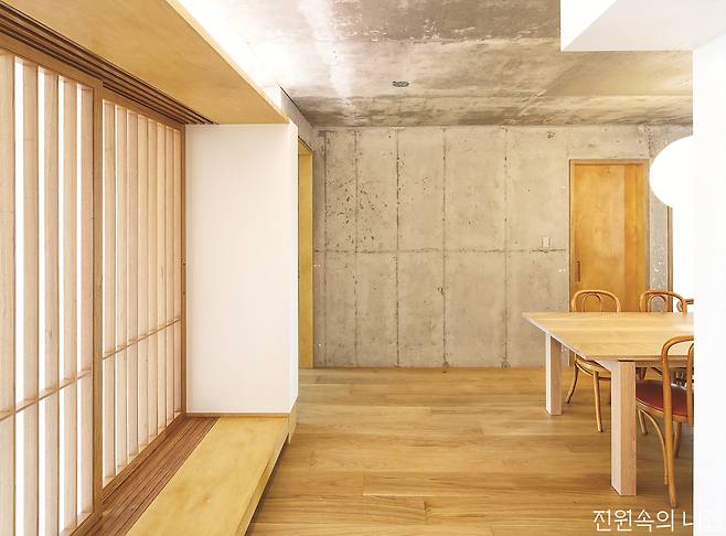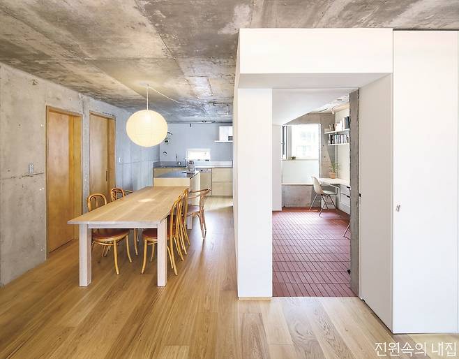 자꾸만 질문하고 싶은 집이 있다. 익숙한 모습에서 벗어나 있거나, 공간 구석구석 계획된 디테일로 호기심을 자극하는 집들이 그렇다. 연희동의 한 구옥 아파트 안에서 익숙하지 않은 모습으로 궁금증을 자아내는 공간을 만났다.