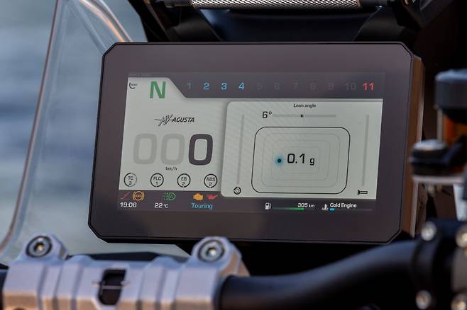 윤 후반에서 느껴지는 짜릿함은 어드벤처에서 느끼기 힘든 영역이에요. 최고출력이 124마력이니까 다른 120마력 대 모델과 비슷한 가속일 텐데 라이더가 느끼는 즐거움은 절대 비슷하다고 말할 수 없죠. 수치로 표현되지 않는 플러스 알파가 있어요. 이건 다른 MV아구스타 바이크들에게서도 비슷하게 느껴지는 부분이네요.