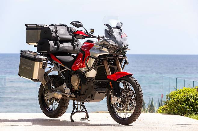 윤 자동차로 비유하면 페라리 푸로산게, 람보르기니의 우르스와 같은 맥락일까요. 오프로드를 달릴 수 있게 만들었지만, 굳이 그럴 필요가 있을까 싶을 만큼 아껴주고 싶다는 점에서요. 어드벤처 바이크지만 MV 아구스타라는 브랜드가 가진 이미지의 연장선에 있다는 것이죠.