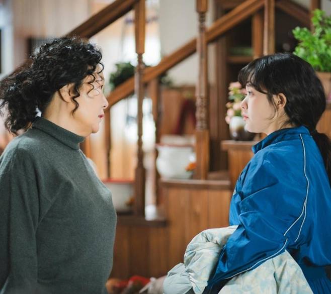 이와 관련 공개된 두 사람의 스틸이 눈길을 끈다. 뽀글 머리에 화려한 패턴의 옷을 입고 있는 오두리(정지소 분)는 20대라고는 믿을 수 없는 패션 감각으로 시선을 사로잡는다. 오말순(김해숙 분)은 두리와 다른 듯 닮은 모습을 하고 있어 이들의 만남이 어떻게 그려질지 벌써부터 흥미진진하다.