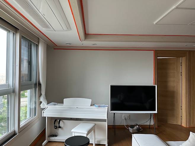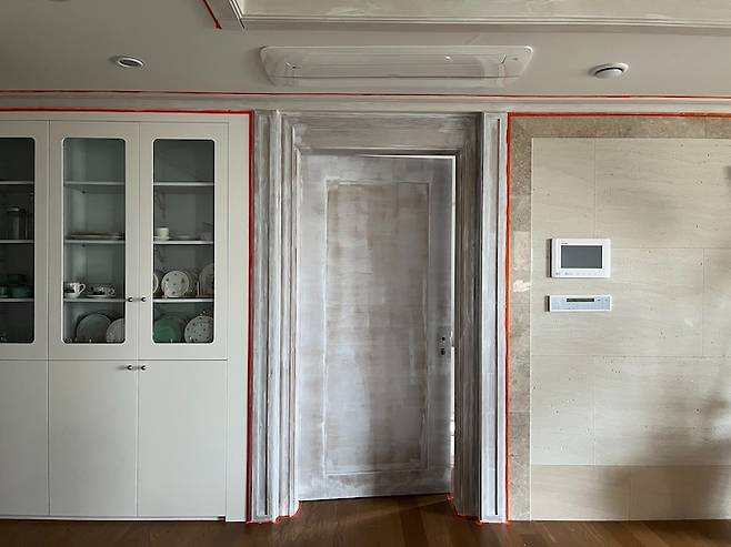 마스킹 테이프를 붙이는 데만 일주일 정도 걸렸던 것 같아요. 매일 여기에만 몰두할 수 없고 아이들도 챙기고 밥도 해야하고 집안일도 업무도 해야 했으니까요.