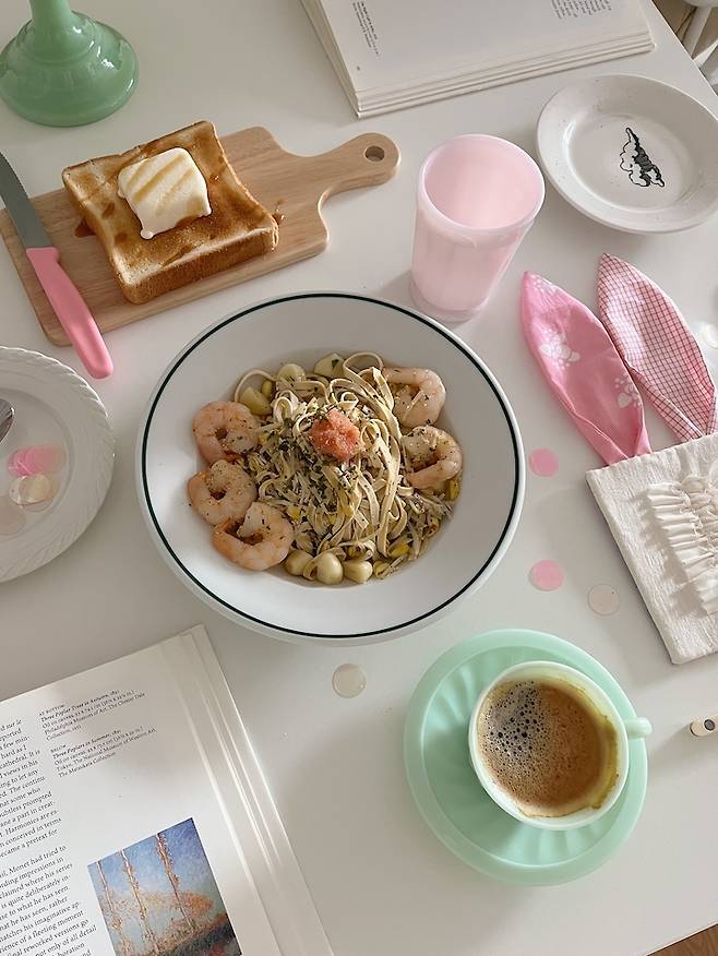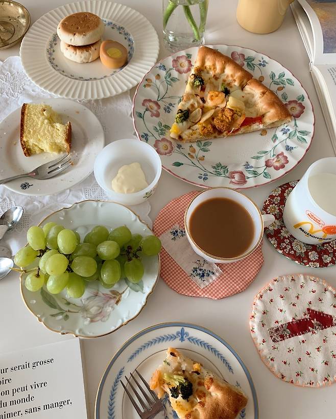 저는 여전히 예쁜 그릇을 좋아하고 맛있는 요리를 하며 테이블 위에 따뜻한 일상을 기록하고 있습니다. 변하지 않는 저의 모토, 하나를 먹어도 예쁘게 먹자! 인데요. 매일 반복되는 일상 속에서 작지만 소소한 행복이랍니다.