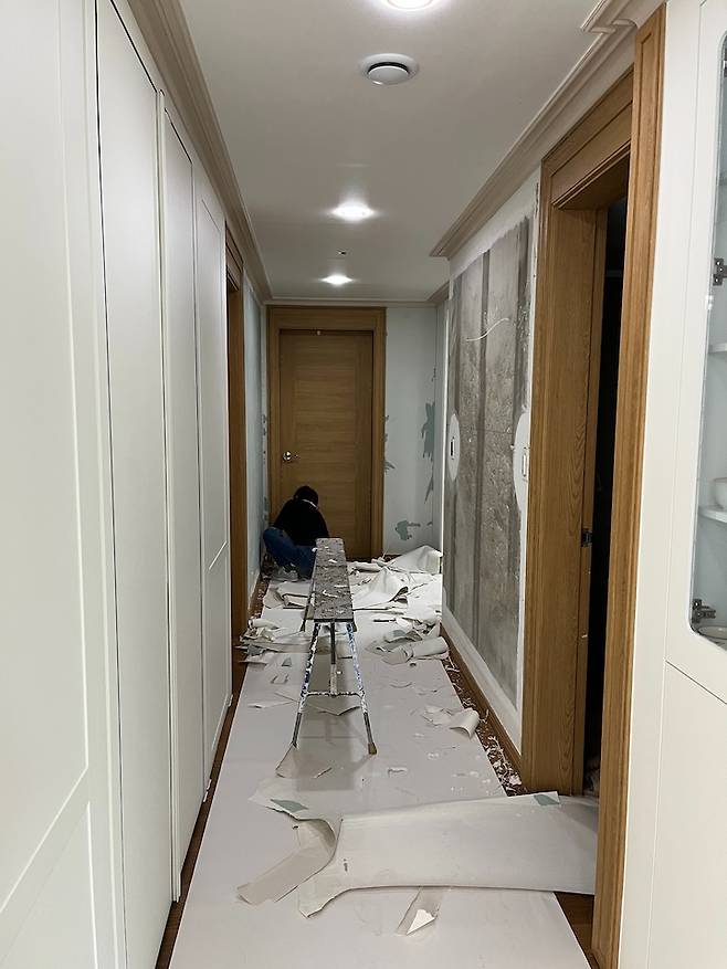 일단 기존 도배를 뜯는 과정에서 먼지가 너무 많이 나고 손도 못 댈 만큼 집은 엉망진창이 되고 환기하기도 정말 힘들고.. 그야말로 초토화! 아무튼 상상 그 이상이었어요.
