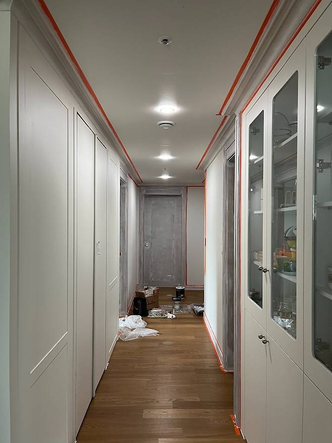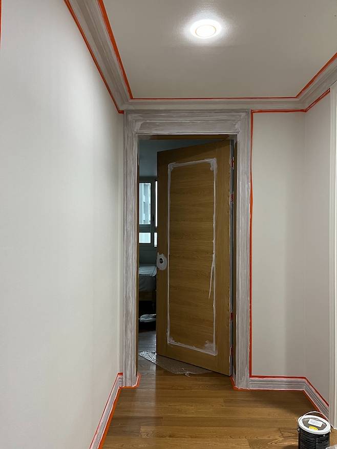이번엔 업체가 아닌 제가 직접 방문과 몰딩 페인팅을 하기로 했답니다. 예전에 몇 번 해봤기도 했고 페인팅하는 것에 대한 자신감도 있었구요. 다만 작업해야 할 양이 많아서 그 점이 살짝 걱정되긴 했어요.