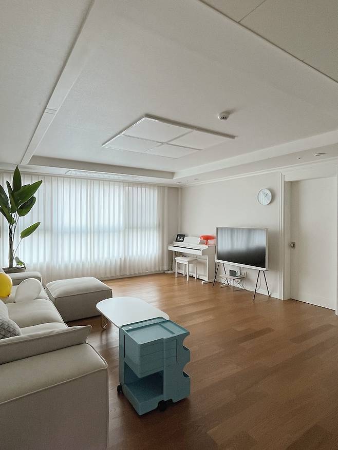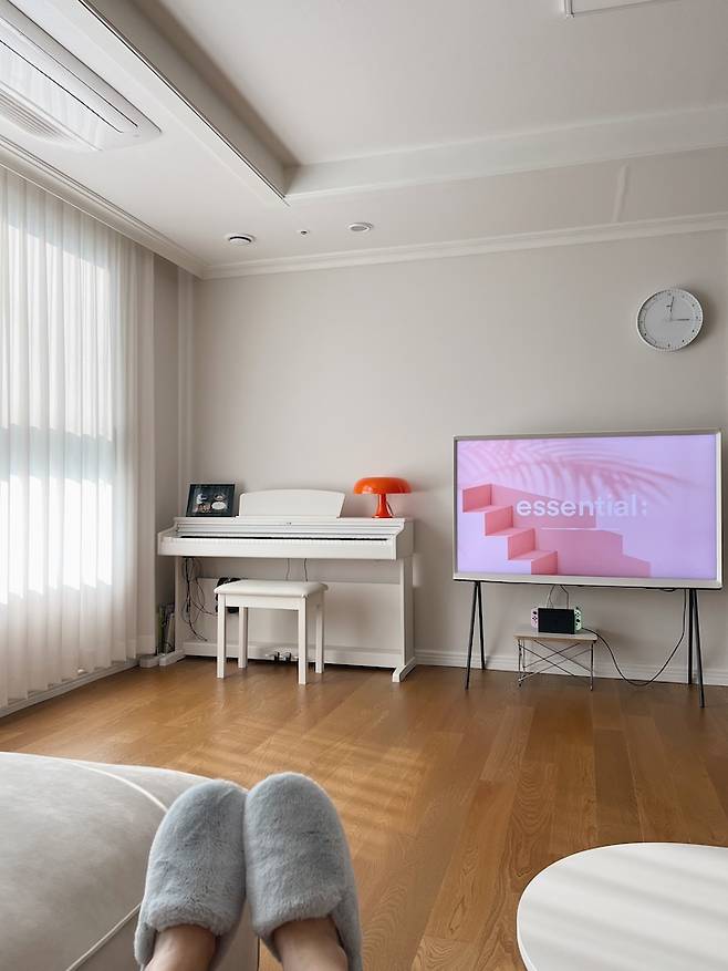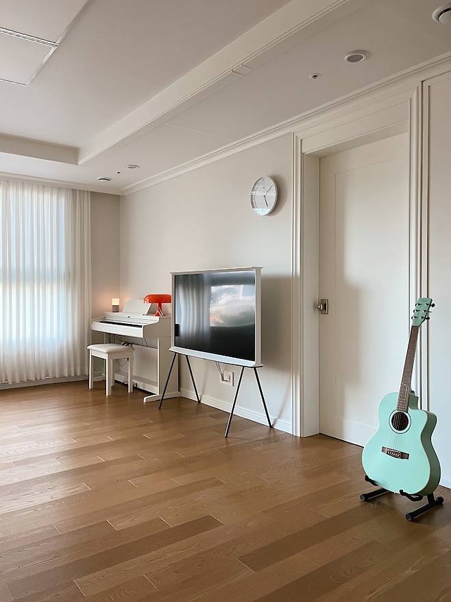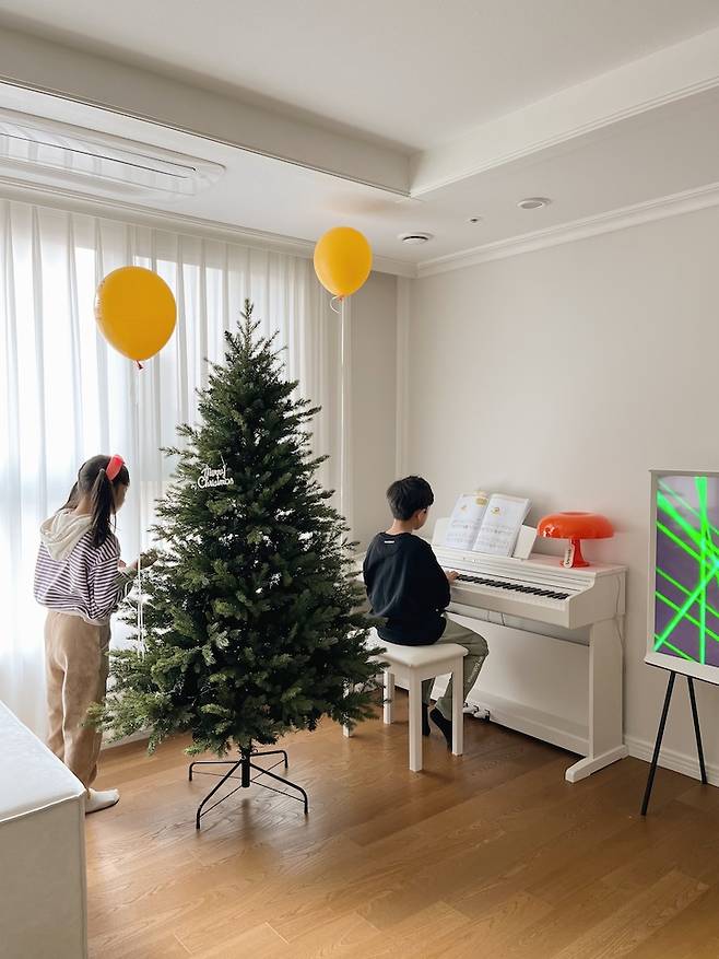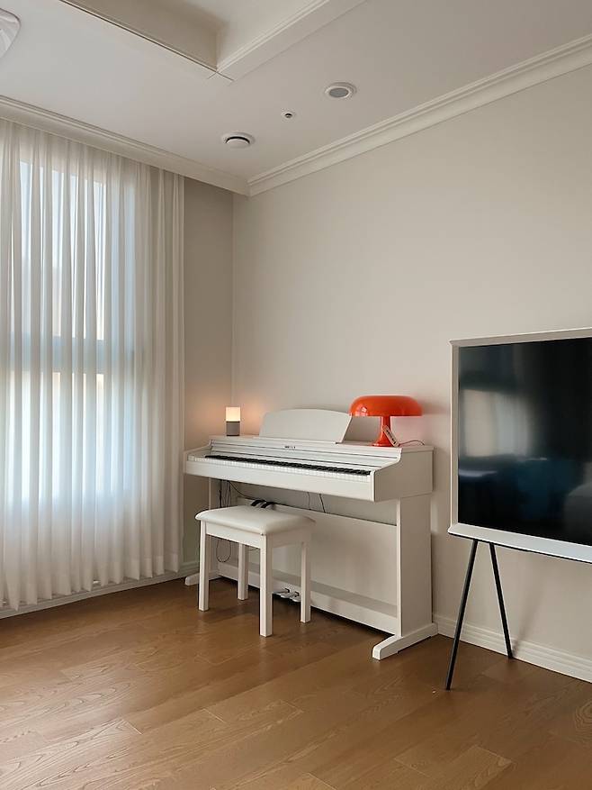 거실에 피아노가 있으니 아이들이 오며 가며 자연스럽게 피아노를 쳐요. 거실에 울려 퍼지는 잔잔한 피아노 소리는 우리 부부에게 힐링이에요.