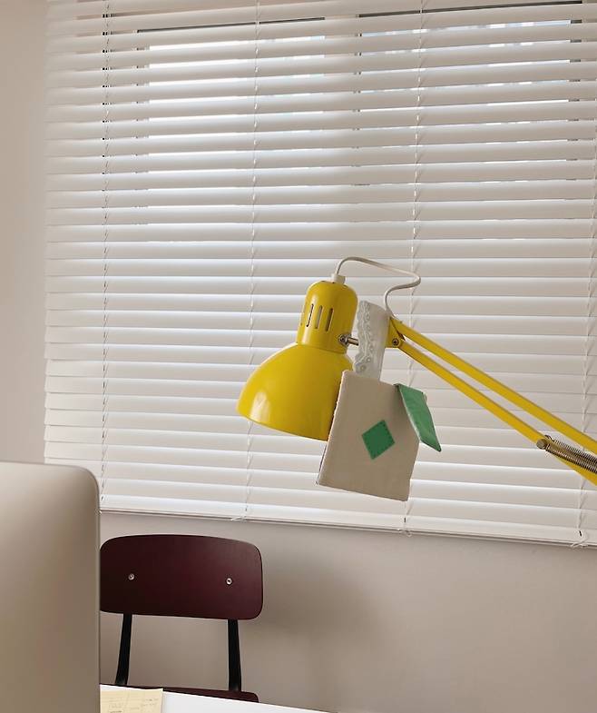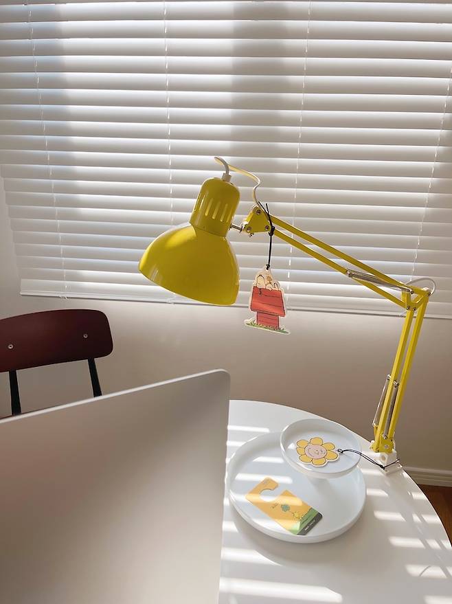 이 방은 옐로우가 포인트예요. 오래 전에 산건데 쨍한 색상이 마음에 들어요. 볼수록 기분도 좋구요. 위치 조절도 가능하고 쓰면 쓸수록 너무 편해서 아이방에도 이 조명을 달아주었어요.