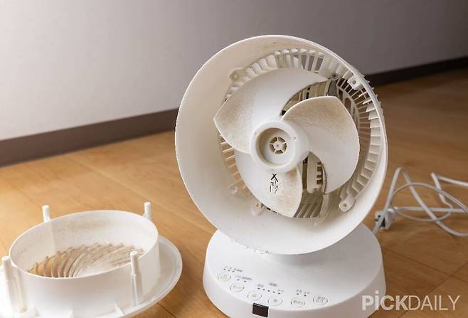 선풍기를 세척할 땐 전원을 반드시 뽑고, 본체는 물수건이나 알코올 티슈로 닦는 것이 안전하다. 날개와 그릴은 분리해서 미지근한 물에 중성세제를 풀고 세척하면 된다. 특히 날개 축 부위는 부드러운 칫솔로 문질러 묵은 먼지를 제거하자. 말릴 때는 그늘진 곳에서 완전히 건조되도록 두는 것이 좋다. 단순히 겉만 닦고 바로 조립하면 남은 습기가 다시 곰팡이로 번질 수 있다. 물기가 없도록 완전히 건조된 후 다시 조립해야한다.