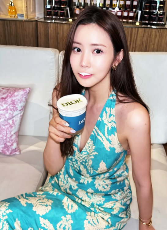 깊게 파인 브이넥 라인은 우아한 분위기를 더했고, 은은한 골드 이어링과 팔찌로 세련미를 배가시켰다.