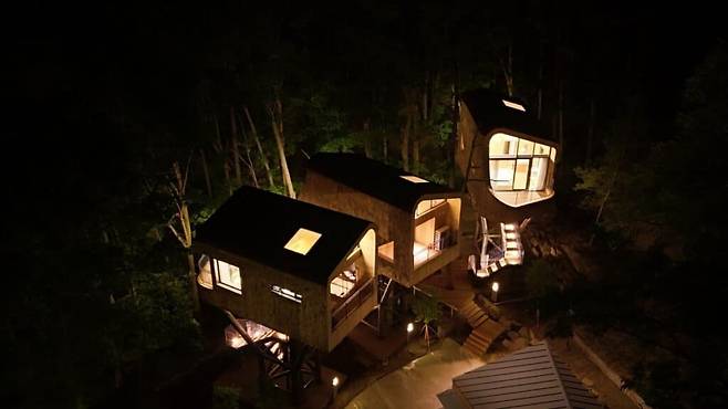 TV도, 바비큐장도, 시끄러운 편의시설도 없다. 대신 조용한 산속에서 나무 위 숙소에 머물며 오래된 LP가 들려주는 음악과 함께 하루를 마무리할 수 있는 공간이다.