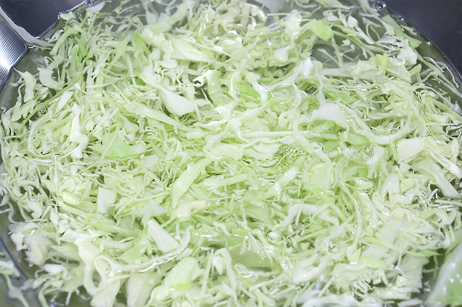 채 썬 양배추는 찬물에