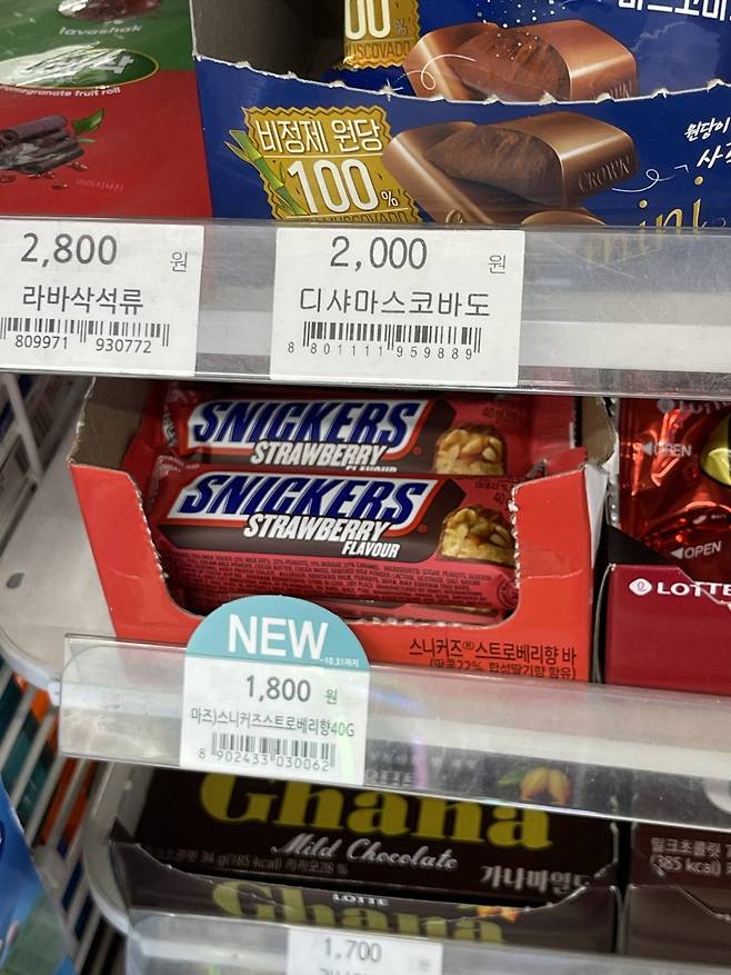 일반 스니커즈의 맛에 뒤에 딸기향이 은은하게 느껴져요.