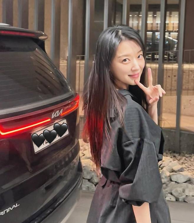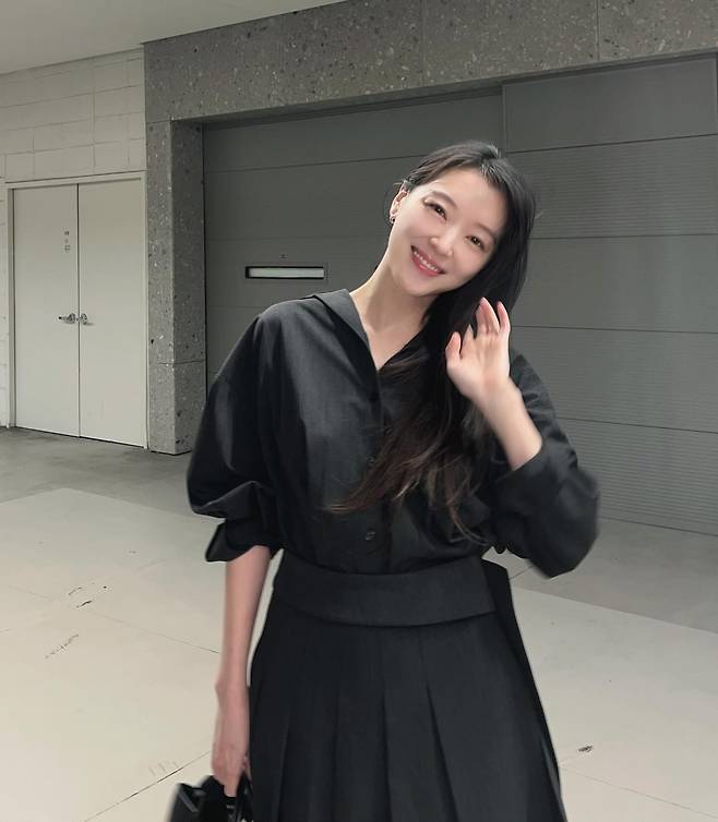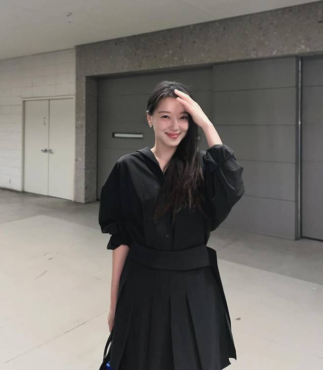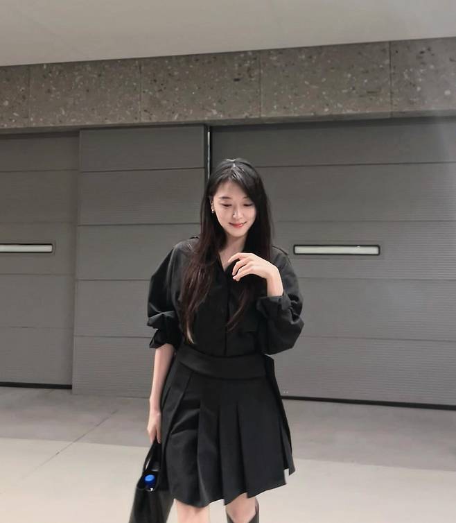 길게 늘뜨린 흑발 생머리와 은은하게 짓는 미소는 올 블랙이 주는 차가운 느낌을 중화시키며 조우리 특유의 청초한 분위기를 배가시키고 있죠.