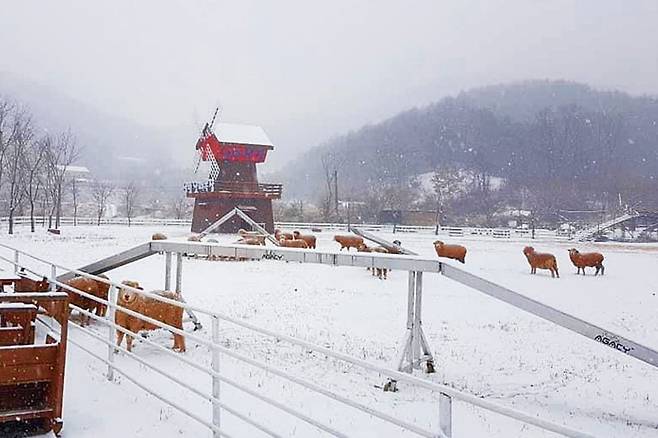 가평 양떼목장은 겨울철 로맨틱한 분위기로 커플과 가족들에게 사랑받는 장소입니다.