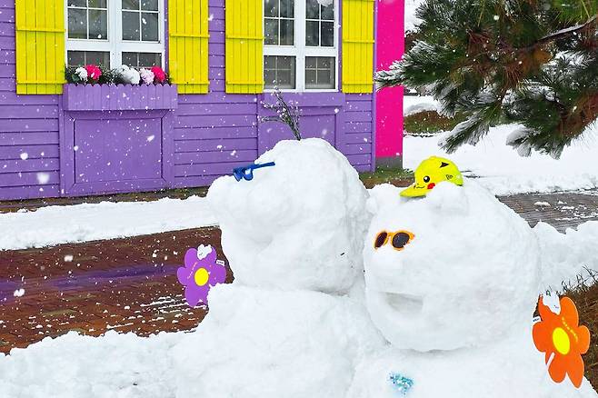 겨울의 안성팜랜드는 하얀 눈으로 덮인 넓은 초지가 마치 동화 속 풍경을 연상시킵니다.