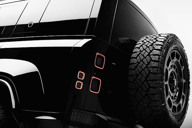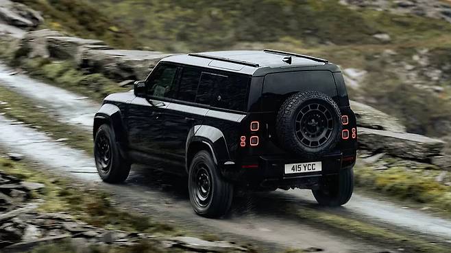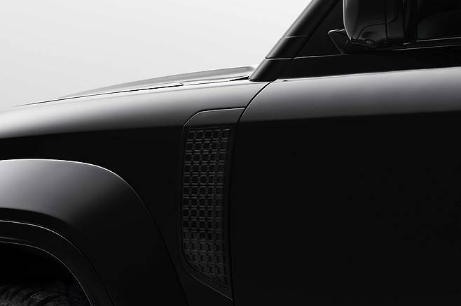 실내 역시 블랙 테마로 통일했다. 시트는 가죽과 고급 크바드랏(Kvadrat) 울 블렌드 소재의 조합으로 제작됐으며, 에보니(Ebony) 컬러로 마감됐다. 디펜더의 시그니처 요소인 대시보드를 가로지르는 노출형 메탈 빔도 블랙으로 처리됐다.