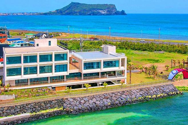 내부는 감각적인 유럽풍 인테리어로 꾸며져 있고 넓은 통창 너머로 제주 푸른 바다가 펼쳐져 지역 최고의 경치를 자랑합니다.