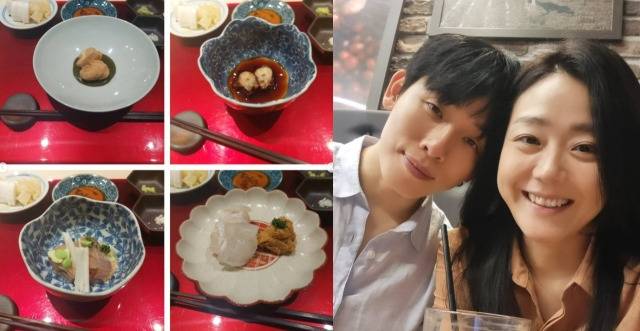 공개된 사진 속엔 강남 논현동에 위치한 일식 레스토랑에서 음식을 먹고 있는 커플의 모습이 담겼다.