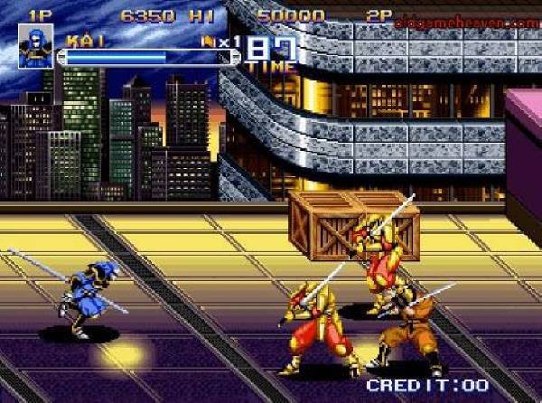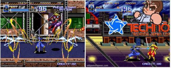 '변신닌자 섀도우포스'는 1994년도에 테크노스 재팬에서 제작한 오락실용 액션게임이죠. 벨트스크롤계에 캡콤이라는 왕이 군림했다면 테크노스 재팬은 벨트스크롤 타격 액션계의 아버지 같은 존재죠. 그만큼 타격감과 다양한 액션 동작 등 게임성 하나만큼은 보장해줍니다.