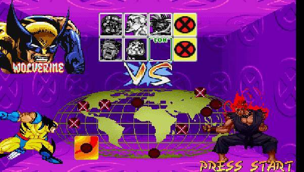 전통의 장풍, 승룡권 계의 대전 게임에서 벗어나 독특한 게임성과 대전을 주고 싶었던 것 같은데요, 엑스맨에서도 초능력자들의 다양한 초능력을 활용하여 대점프와 체인콤보, 레이저 빔 방식의 장풍 공격 등으로 독자적인 대전 환경을 구축하기 시작했지요.
