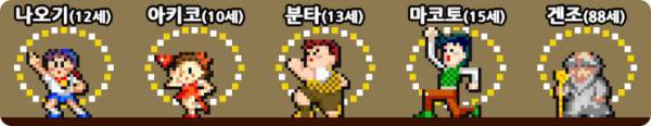 검떠 : 게임에 등장하는 5명의 캐릭터들은 저마다 특징적인 초능력을 가지고 있었는데요, 꼬마는 평균 능력치를 가지고 있었고.. 꼬마 여자애는 점프 유지가 좀 길었던 걸로 기억합니다. 살찐 캐릭터는 역시나 파워형 네 번째 길쭉이 캐릭터는 점프가 높았고 마지막 할아버지는 공격력은 최강이지만 노인 답게 느렸던.. 나름대로 취향에 맞게 밸런스를 조절했던 게임이었죠.