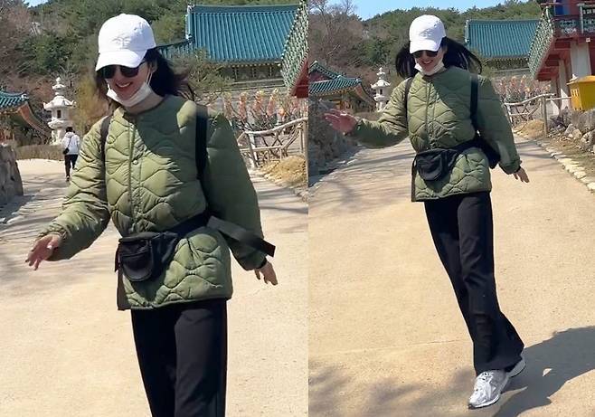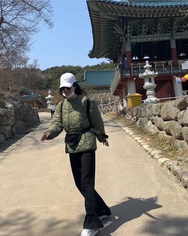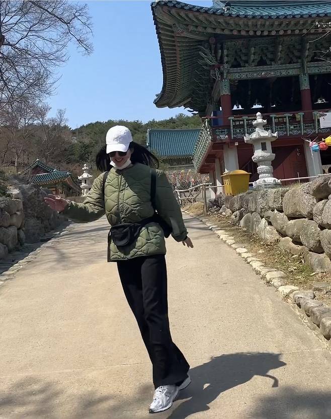 또한 박솔미는 블랙 조거 팬츠와 스포티한 러닝화, 그리고 심플한 화이트 볼캡을 매치해 활동성과 스타일을 모두 챙긴 산책룩의 정석을 완성했습니다.