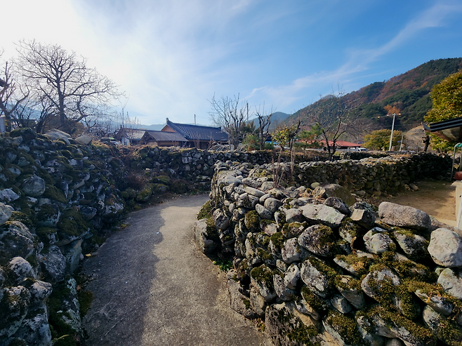 한밤마을 돌담길은 계절마다 다른 분위기를 지니지만, 겨울에는 특히 고요함이 살아납니다. 관광객이 몰리는 봄이나 가을과 달리, 겨울에는 마을의 일상과 풍경이 자연스럽게 드러납니다.