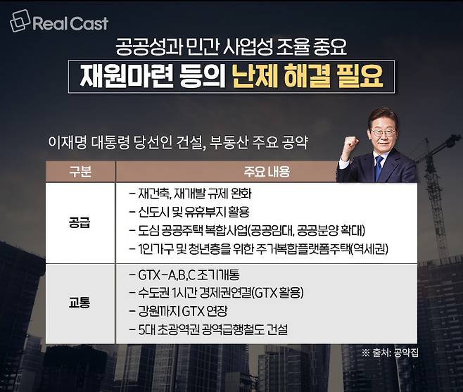 이재명 대통령 당선인이 주로 언급했던 건설, 부동산 공약의 핵심은 ‘공급 확대’ 입니다.
