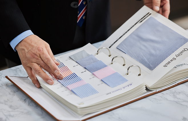 셔츠를 구입할 때는 사이즈는 물론 소재도 반드시 확인해야 한다. 소재에 따라 입었을 때의 모습과 착용감, 관리 방법이 달라지기 때문이다. 원단의 수와 수축 가공 여부를 미리 확인하면 셔츠를 오랫동안 입을 수 있다.”