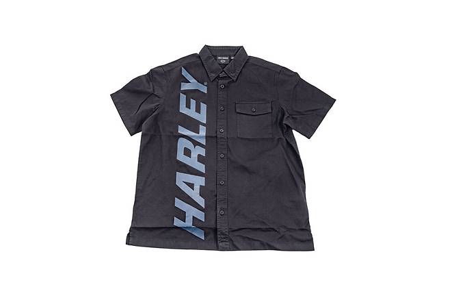미케닉들이 착용하는 작업복에서 영감을 받아 만든 할리데이비슨의 캐주얼 반팔 셔츠. 스트레이트 핏에 스냅이 적용된 가슴 포켓 디테일이 적용되었다. 볼드한 할리 로고로 젊은 감각을 더했다. 블랙과 블루, 두 가지 색상으로 출시했다.