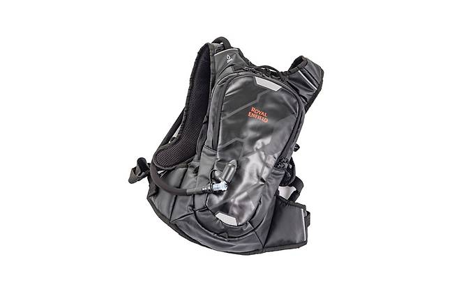 올 블랙 컬러에 심플하게 올라간 레드 컬러 로얄엔필드 로고가 포인트가 되는 캐멀 백. 가방 안에 2L짜리 물주머니가 있어 수분 소모가 많은 여름철 장시간 라이딩이나 오프로드 라이딩 중 편하게 수분을 보충할 수 있다. 가방의 외피는 내마모성이 높은 PU 코팅 폴리에스터 소재를 사용했다. 허리와 어깨를 지지하는 스트랩은 체중 분배를 위해 인체공학적으로 설계했다.