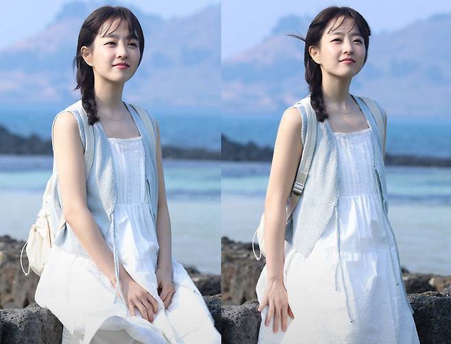 햇살 가득한 제주 해변에서 진행된 촬영에서 박보영은 특유의 부드러운 미소와 투명한 피부로 한 폭의 그림 같은 장면을 연출했습니다. 내추럴한 스타일링과 바다의 푸른빛이 어우러져 보는 이들에게 마치 시원한 바닷바람을 전하는 듯한 상쾌함을 선사합니다.